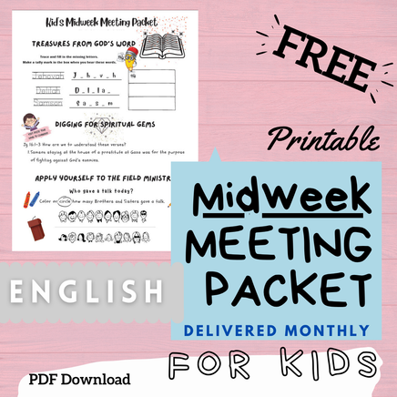 This Midweek Meeting Packet is the perfect tool to help keep the young ones focused on the subject matter during the meetings and will keep them busy with hands-on activities while absorbing spiritual concepts at the same time. An entire month of content is created for the weekly meetings as one packet and posted a few days before the beginning of the month, so you can prepare for the children in advance.