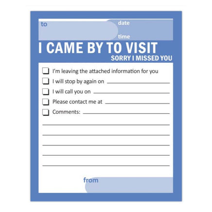 A quicker way to leave a note for a return visit! Large enough sheet with plenty of space for your personalized handwritten message.